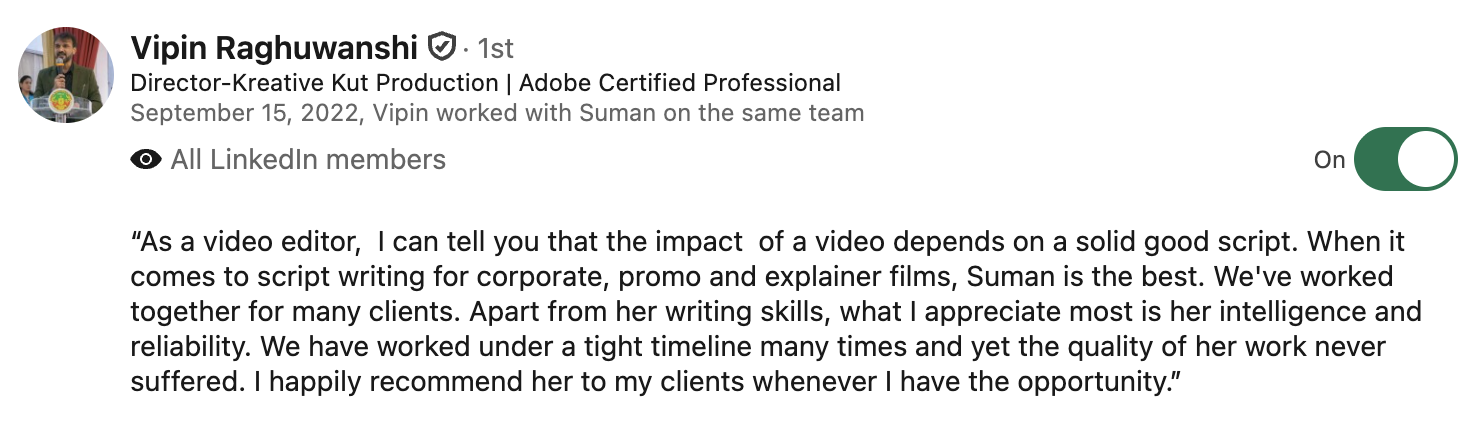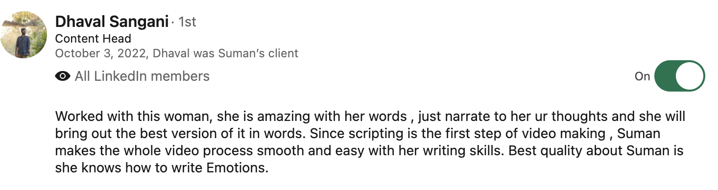 I’m Suman, a communication professional with experience across writing, brand communication, and voice-led content.